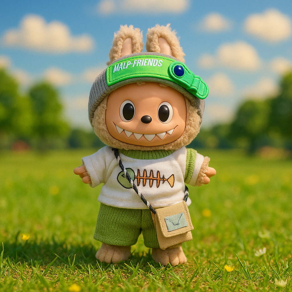 Dive into bold style with the Fishbone Groove Outfit a unique and trendy ensemble for your Labubu. Featuring vibrant green pants paired with a striking fishbone-patterned top, this outfit blends playful design with urban edge. Complete with a cosy beanie and a chic mini handbag, Fishbone Groove captures a cool, modern vibe perfect for any fashion-forward Labubu.