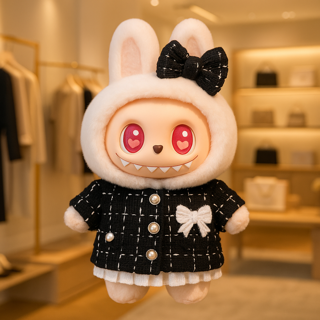 Elevate your Labubu's style with Midnight Royale a black elegance dress that embodies timeless sophistication. This luxurious piece features a sleek silhouette and deep midnight tones, perfect for collectors who adore classic fashion with a refined edge. Whether for a special display or a touch of evening charm, this dress turns Labubu into a miniature icon of grace and mystery.